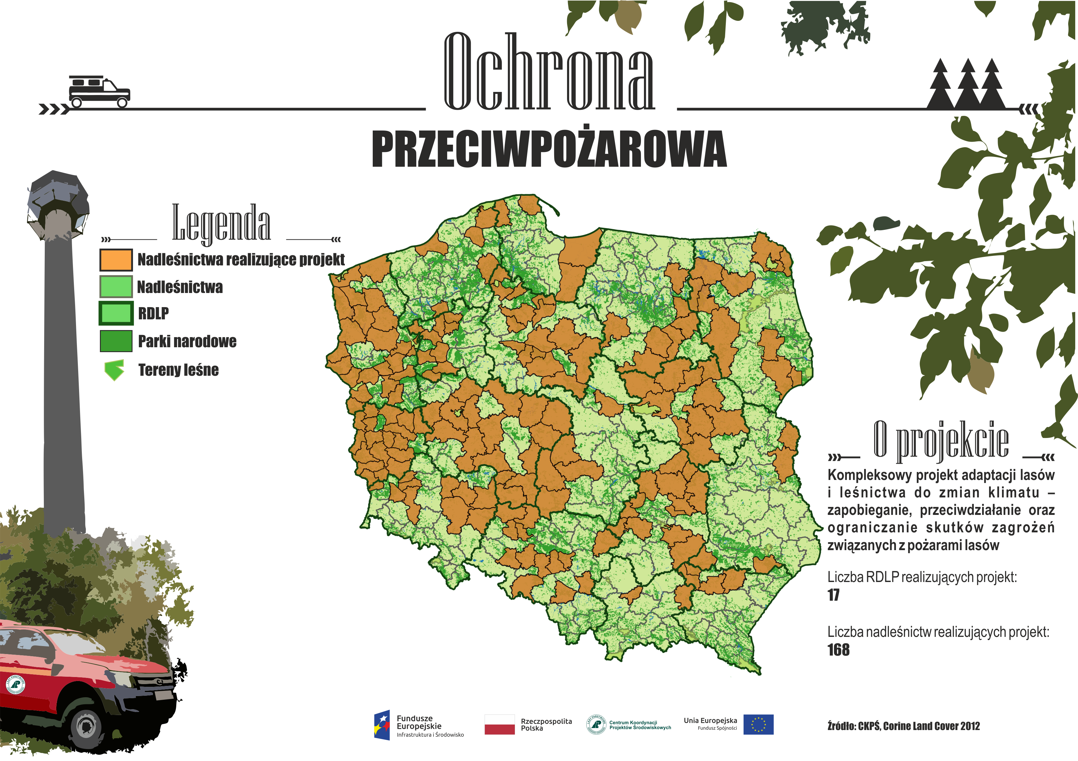 Koordynowanie przedsięwzięcia pod nazwą "Kompleksowy projekt adaptacji lasów i leśnictwa do zmian klimatu – zapobieganie, przeciwdziałanie oraz ograniczanie skutków zagrożeń związanych z pożarami lasów" PGL LP powierzyło CKPŚ. Projekt ten był realizowany w ramach II osi priorytetowej Programu Operacyjnego Infrastruktura i Środowiska (działanie 2.1 Adaptacja do zmian klimatu wraz z zabezpieczeniem i zwiększeniem odporności na klęski żywiołowe, w szczególności katastrofy naturalne oraz monitoring środowiska).